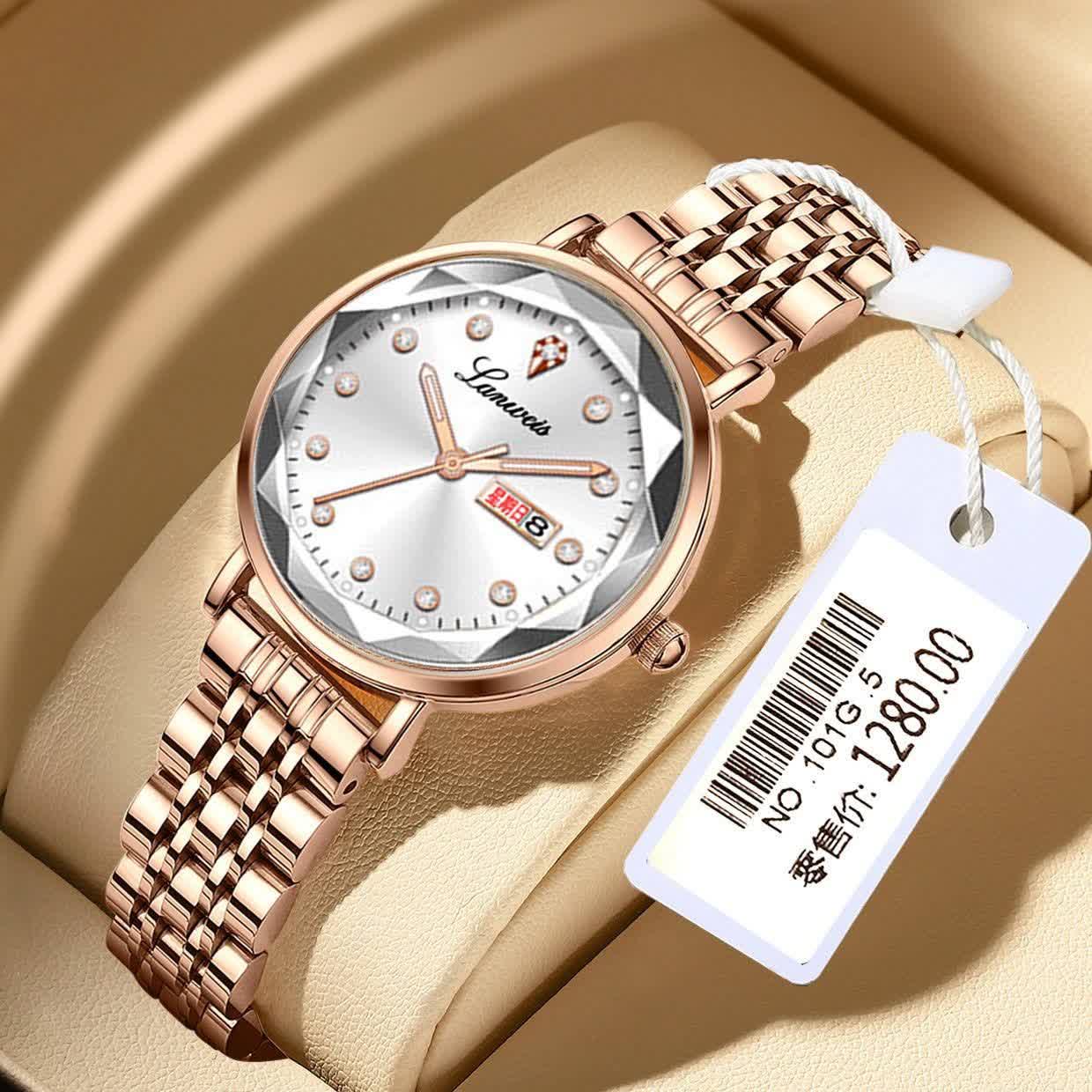 ساعت مچی زنانه لانوینس مدل 1170 با طراحی ظریف و شیک، ترکیبی از زیبایی و کیفیت است. این ساعت با بند و قاب رزگلد، صفحه سبز و سفید و موتور کوارتز دقیق، انتخابی خاص برای بانوان خوشسلیقه است