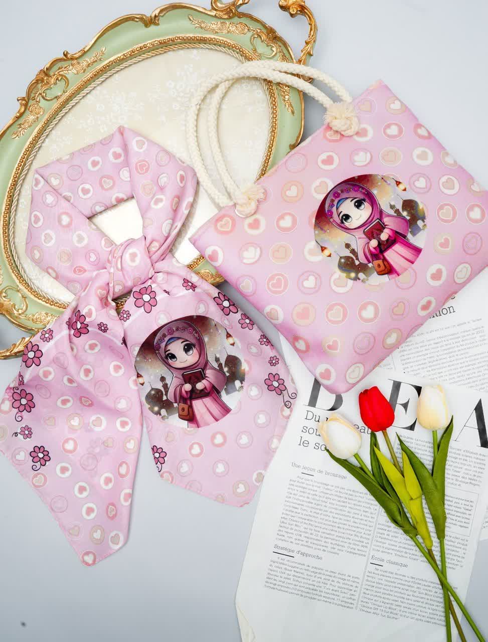 به همراه این کیف، یک روسری نخ اسپان عرض ۹۰ با کیفیت بالا ارائه میشود که بهخوبی روی سر میایستد و برای استفاده طولانیمدت مناسب است.
