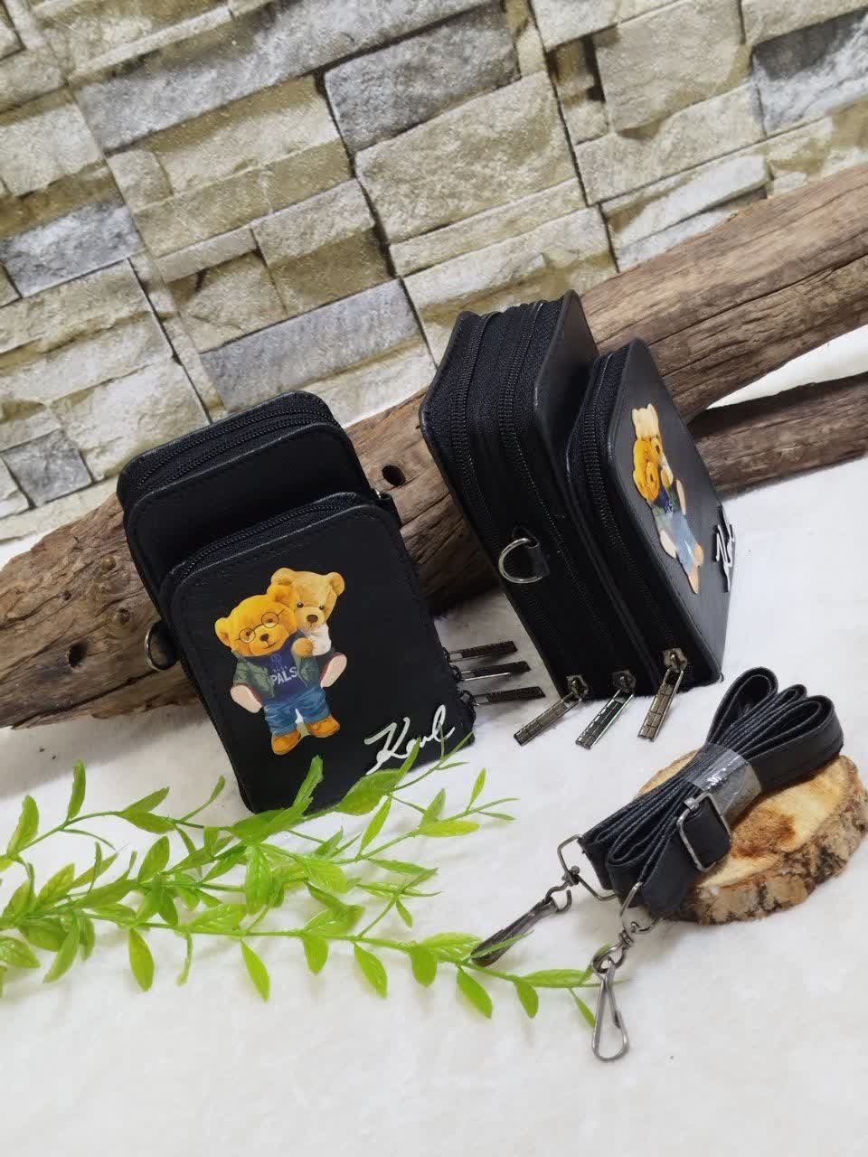 پاسپورتی تدی استوانهای با سه زیپ مجزا، جنس موناکوی باکیفیت، مناسب حمل لوازم کوچک روزمره. سبک، کاربردی و خوشدست.