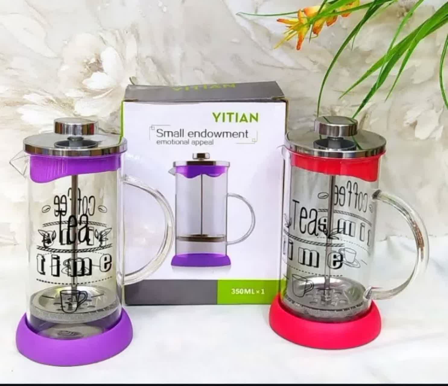 فرنچ پرس رنگی با پایه سیلیکونی مقاوم، مناسب برای تهیه انواع چای و دمنوشهای خوشعطر و قهوه تازه دم ☕️. طراحی رنگارنگ و جمعوجور، انتخابی عالی برای هر آشپزخانهی شاد و مدرن! 🌼